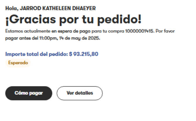 Cuando culmines la orden y la termines con éxito, te aparecerá la siguiente pantalla: